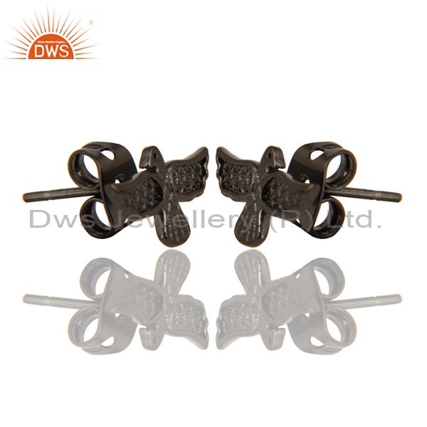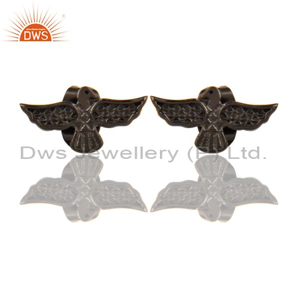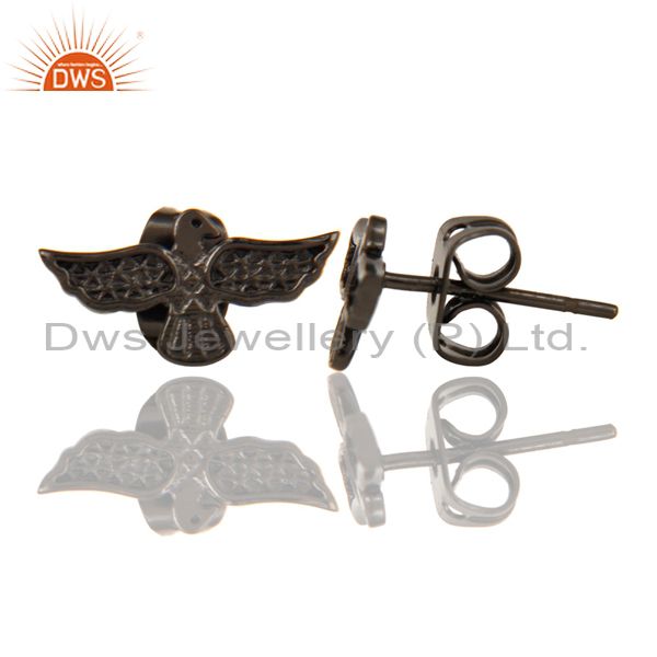 Black Oxidized 925 Sterling Silver Handmade Birds Little Design Studs Earrings