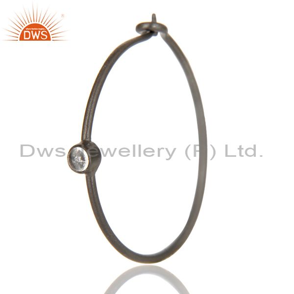 Black Oxidized 925 Sterling Silver Handmade Crystal Quartz Dangle Earrings