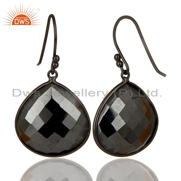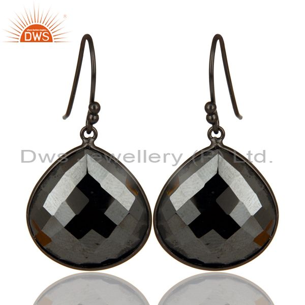 Black Oxidized 925 Sterling Silver Handmade Hematite Bezel Set Drops Earrings
