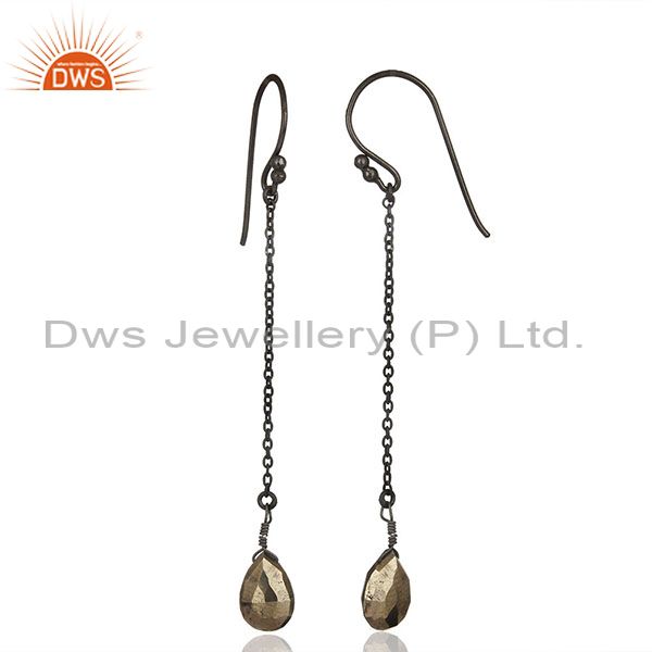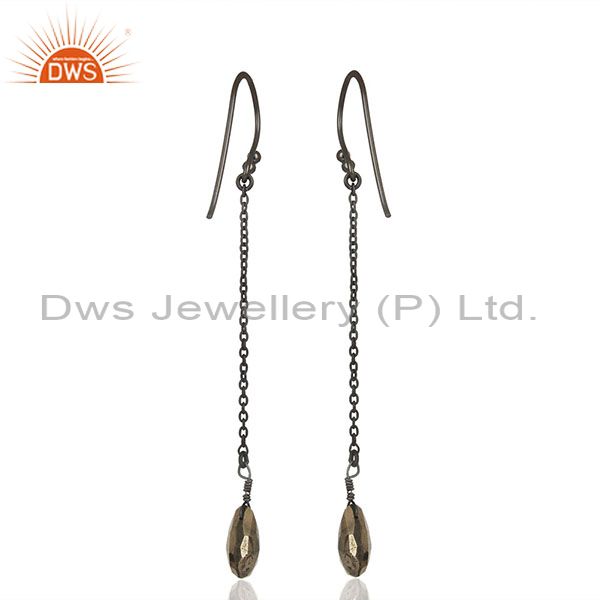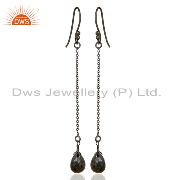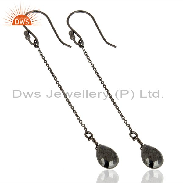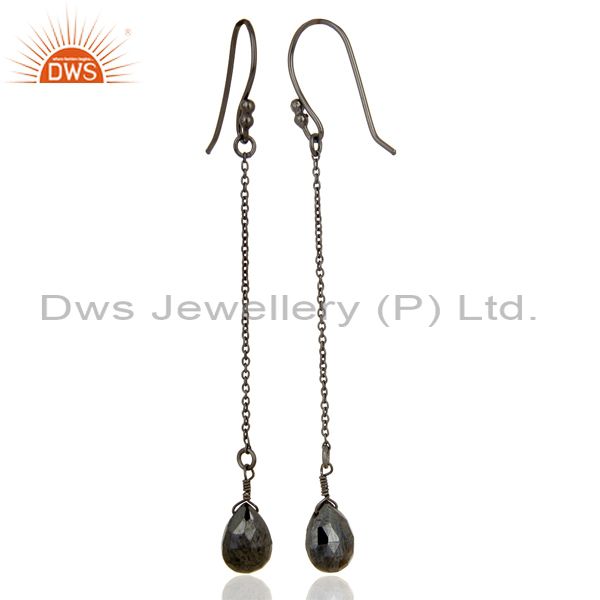 Black Oxidized 925 Sterling Silver Handmade Hematite Link Chain Dangle Earrings