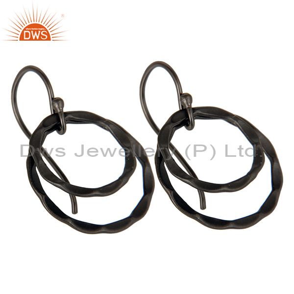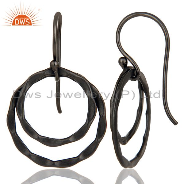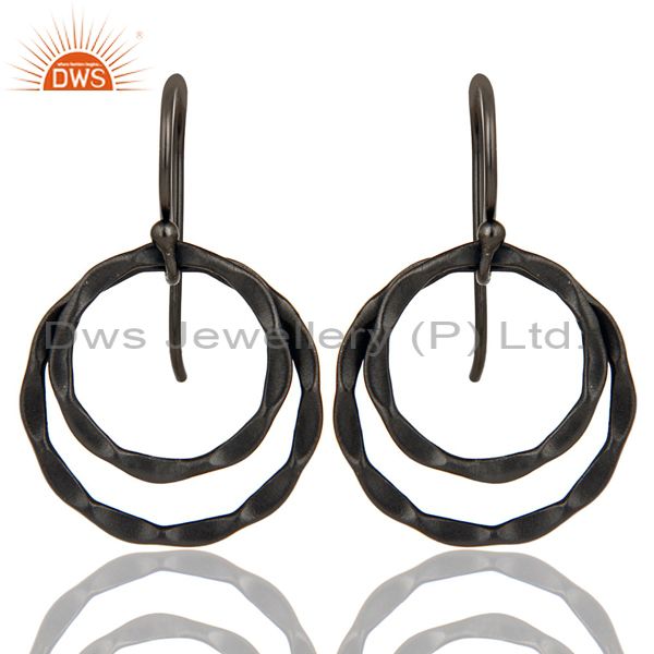 Black Oxidized 925 Sterling Silver Handmade Round Design Drops Earrings