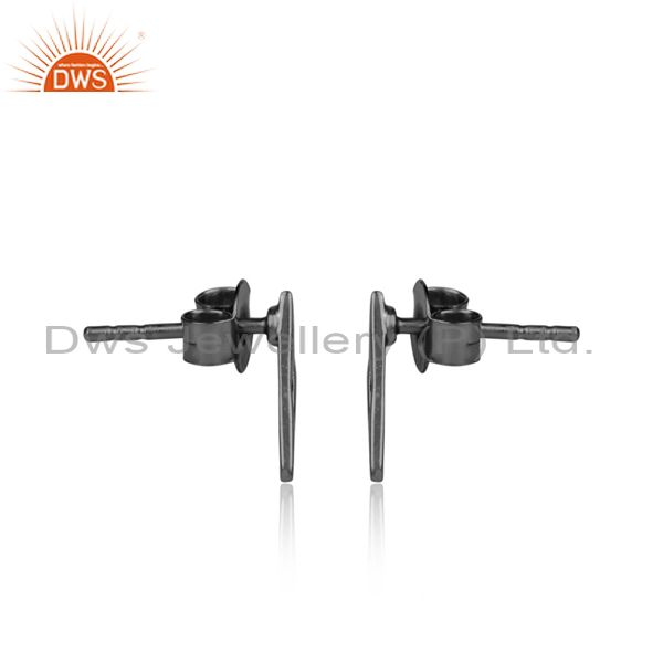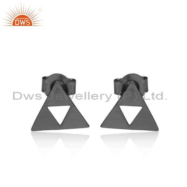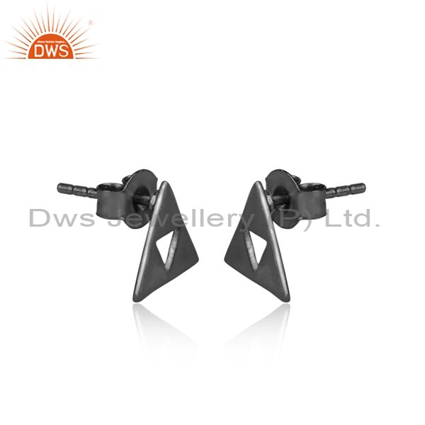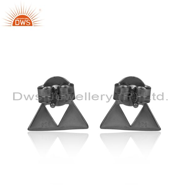 Black Oxidized 925 Sterling Silver Handmade Trillion Cut Style Studs Earrings