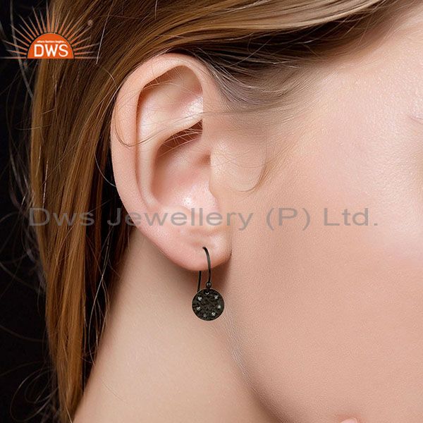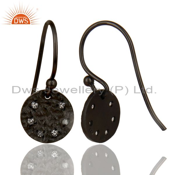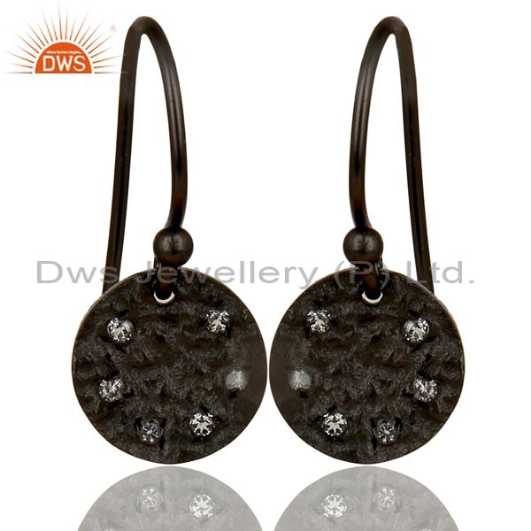 Black Oxidized 925 Sterling Silver Handmade White Topaz Drops Earrings Jewelry