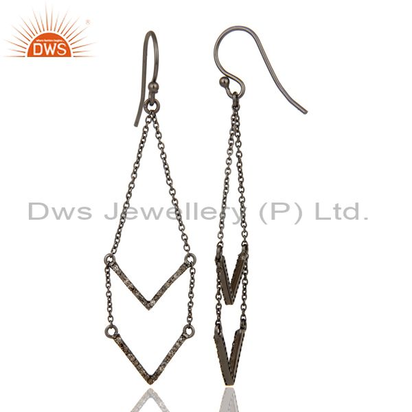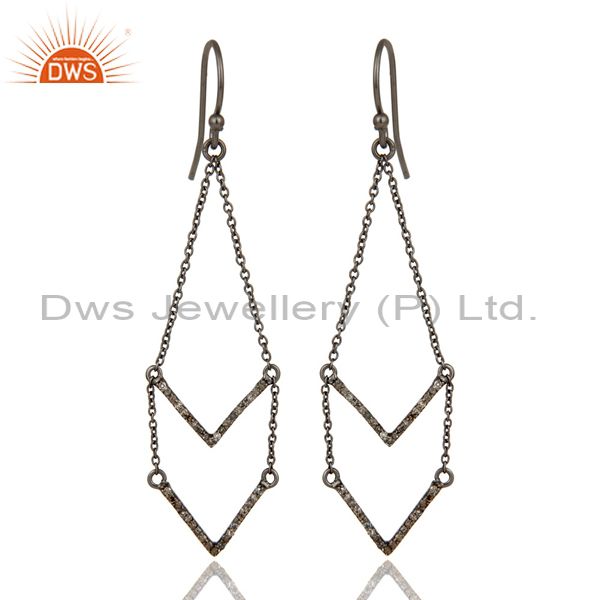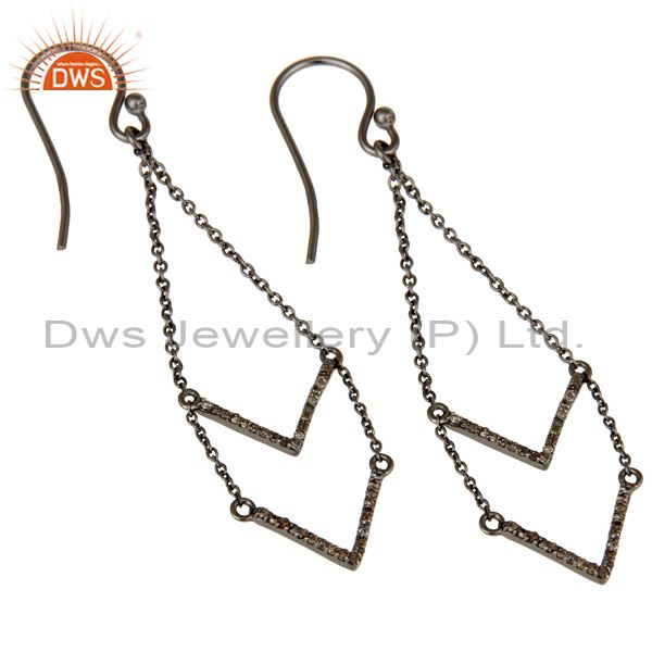 Black Oxidized 925 Sterling Silver Pave Diamond Filigree Woman Earring Jewelry