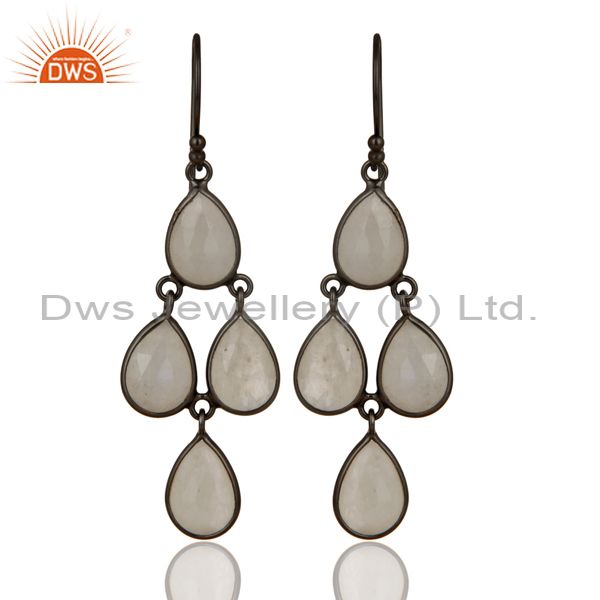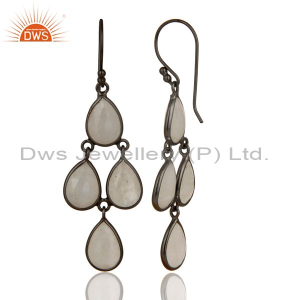 Black Oxidized 925 Sterling Silver Rainbow Moonstone Gemstone Dangle Earrings