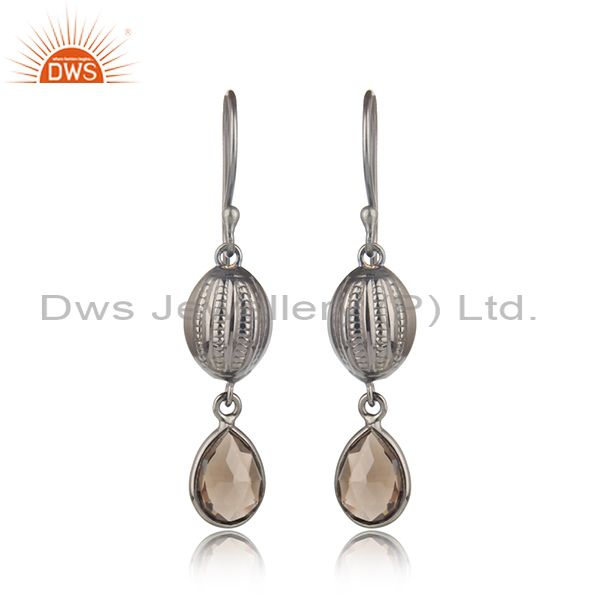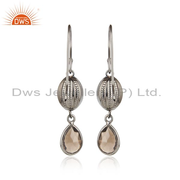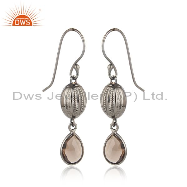Black Oxidized 925 Sterling Silver Smokey Quartz Bezel Set Dangle Earrings