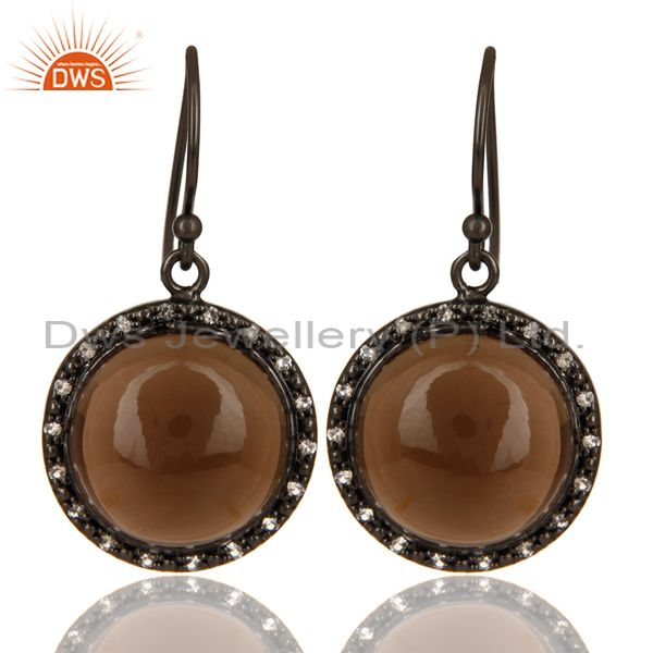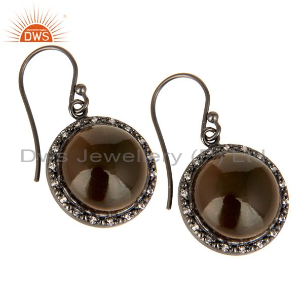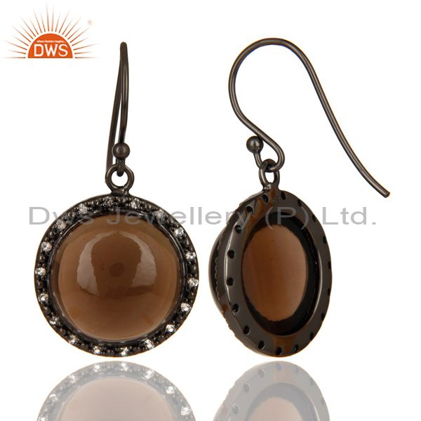 Black Oxidized 925 Sterling Silver Smokey Topaz & White Topaz Drops Earrings