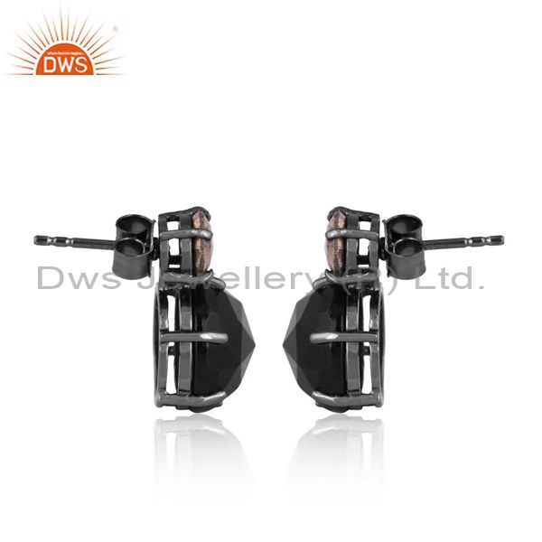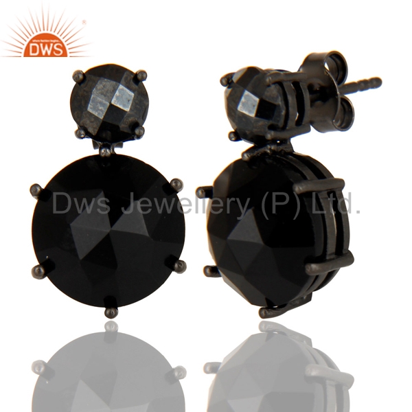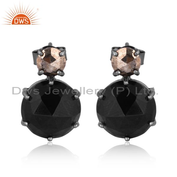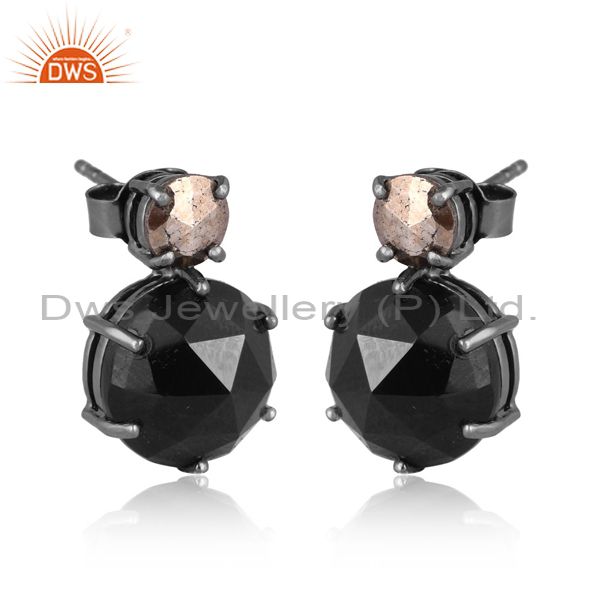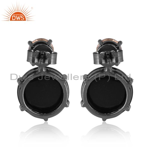 Black Oxidized Sterling Silver Black Onyx & Hematite Prong Set Studs Earrings