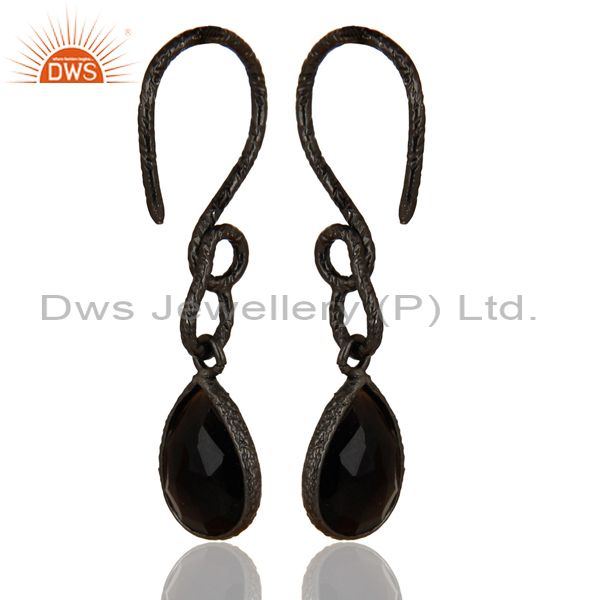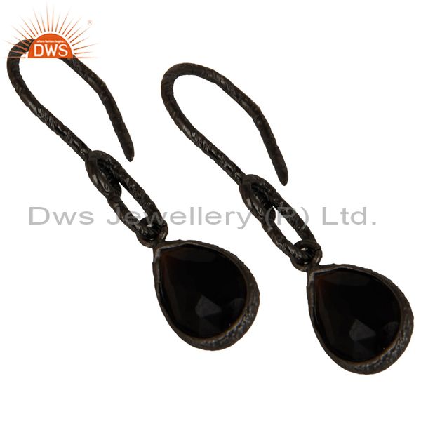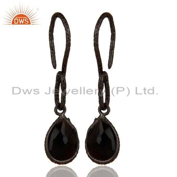 Black Oxidized Sterling Silver Black Onyx Gemstone Bezel Set Drops Earrings
