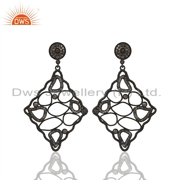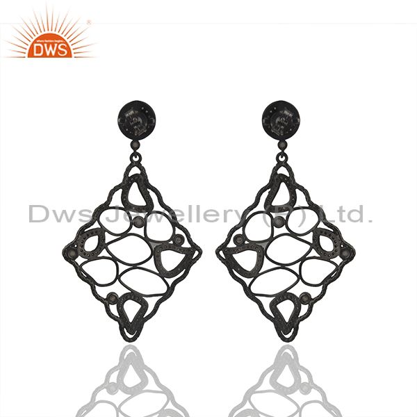 Black Rhodium Plated 925 Silver Pave Diamond Earrings Manufacturer