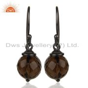 Black Rhodium Plated Silver Smoky Quartz Gemstone Earrings Wholesale
