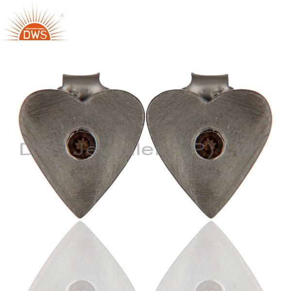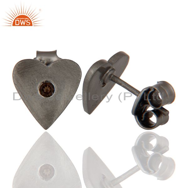 Black Rhodium Plated Sterling Silver Smoky Quartz Heart Stud Earrings For Womens