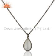 Black Rhodium Plated Sterling Silver White Moonstone Gemstone Drop Earrings