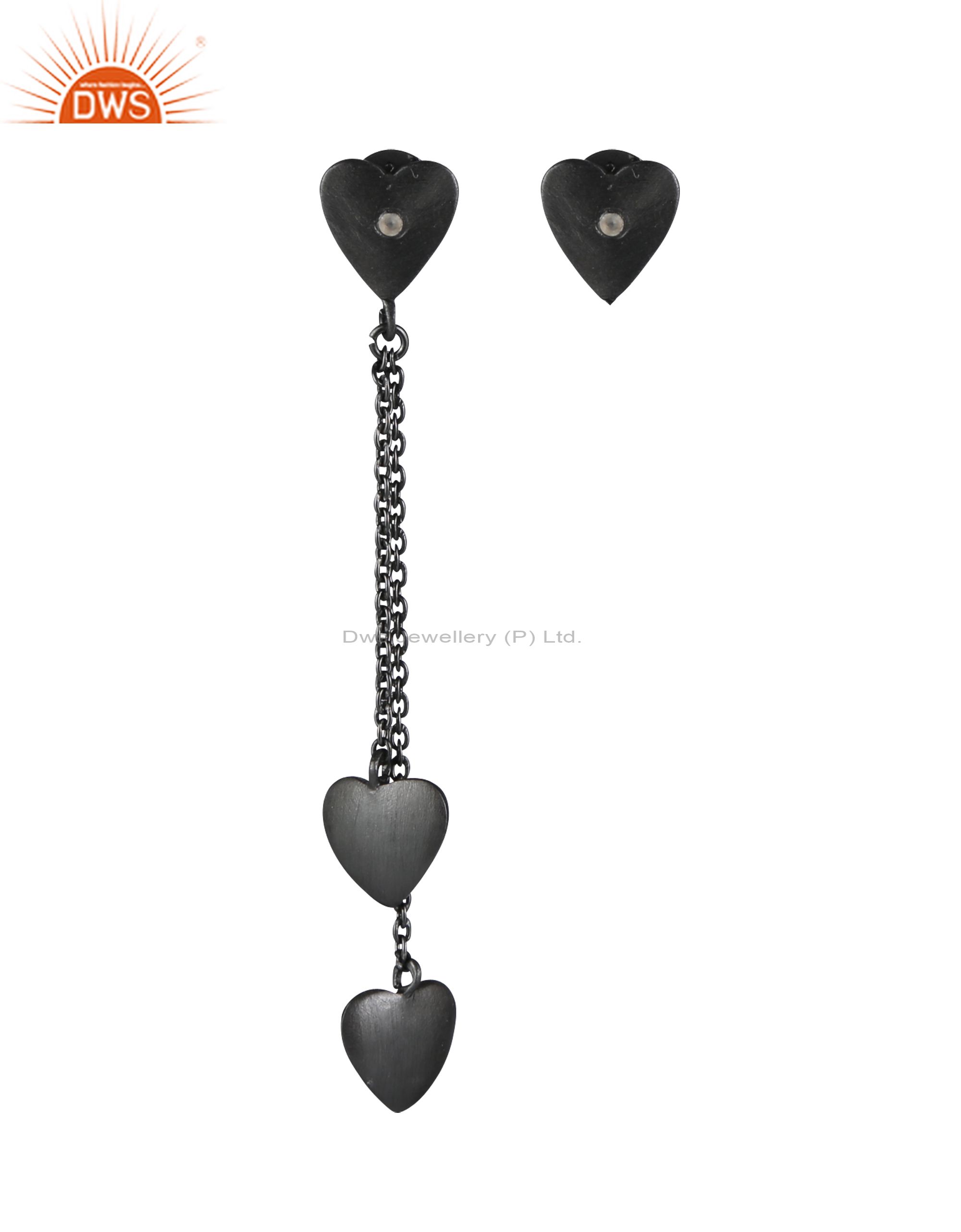 Black Rhodium Plated Sterling Silver White Topaz Chain Heart Dangle Earrings