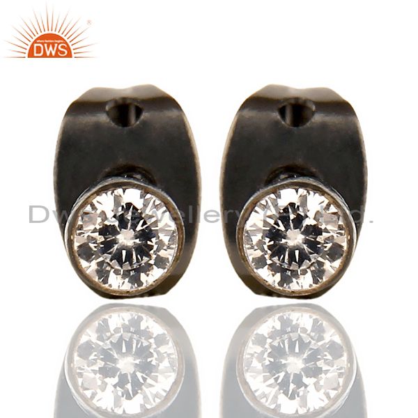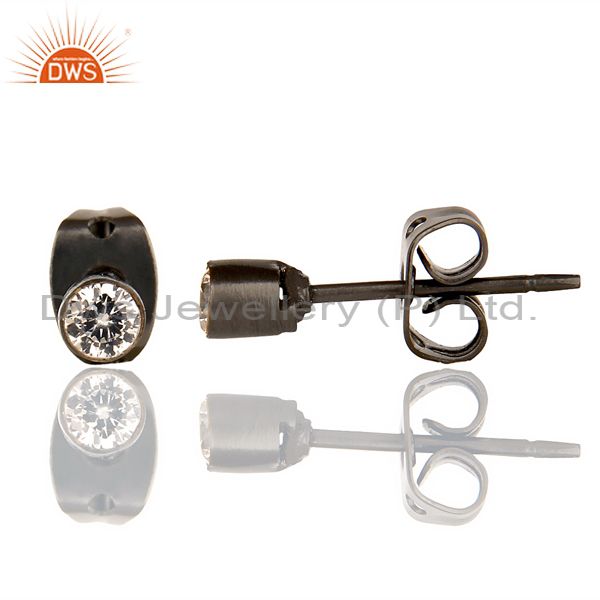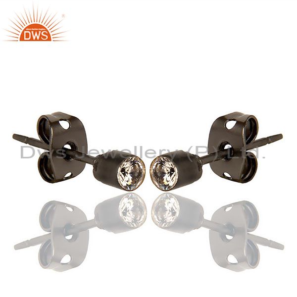 Black Rhodium Plated White Zircon Tiny 3Mm Post Fashion Earrings