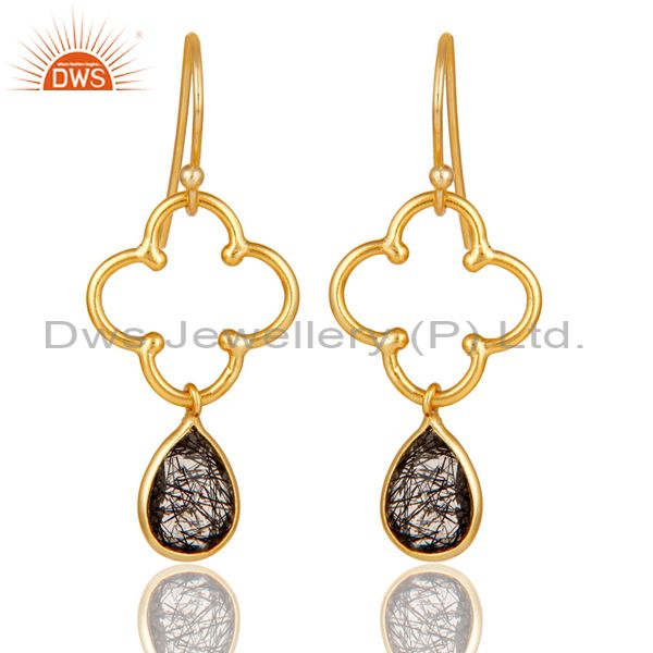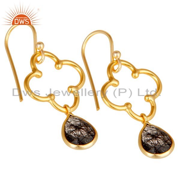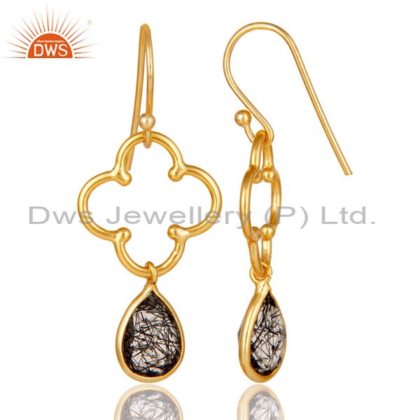 Black Rutile 18K Gold Plated Sterling Silver Artisan Earrings