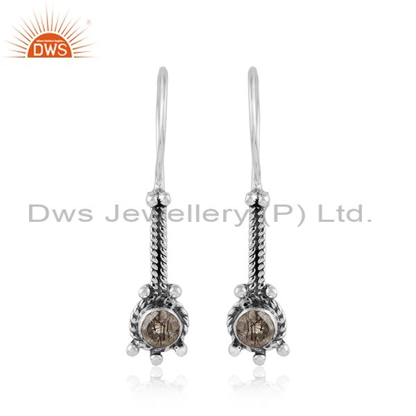 Black Rutile Gemstone Designer 95 Silver Antique Oxidied Earrings