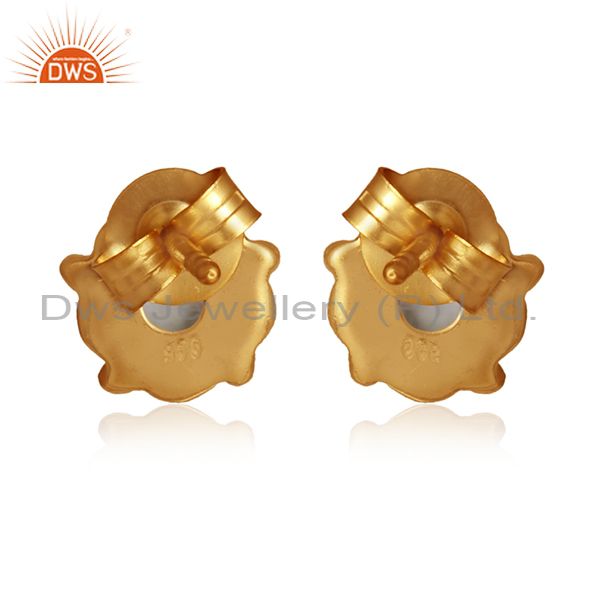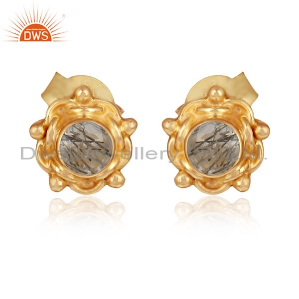 Black Rutile Gemstone Designer Gold Plated Silver Stud Earrings