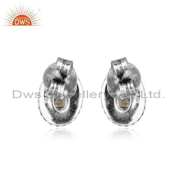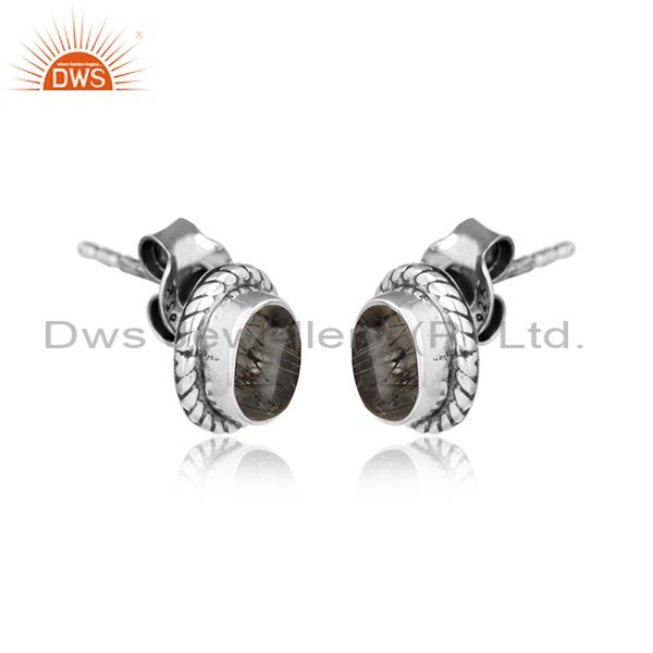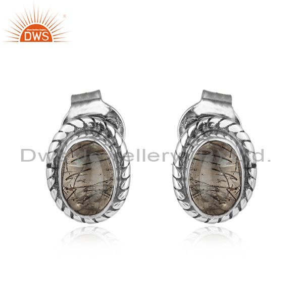 Black Rutile Gemstone Oxidized 925 Silver Womens Stud Earrings