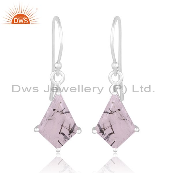 Black Rutile Set Fine Silver Kite Style Long Drop Earrings