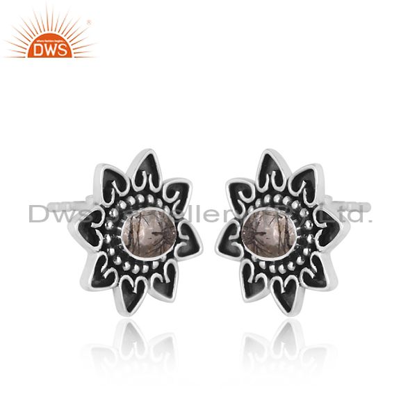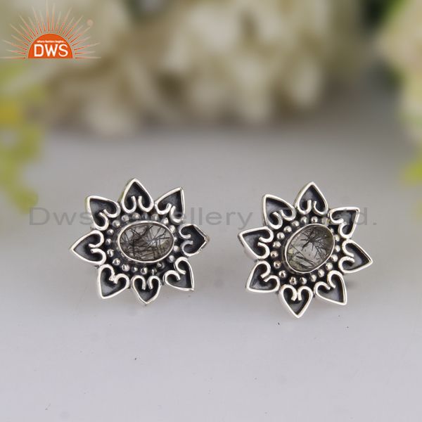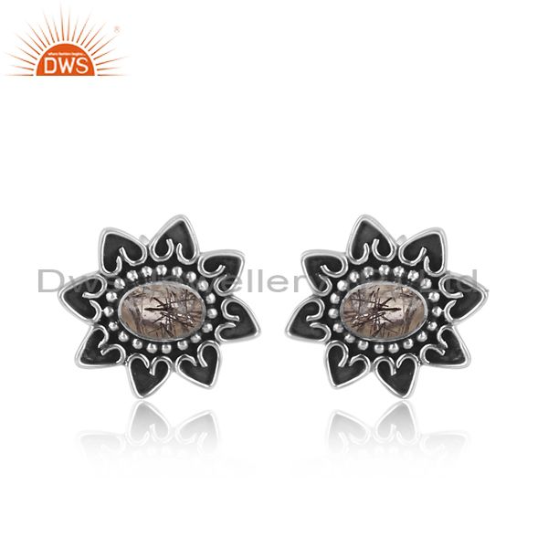 Black Rutile Set Oxidized 925 Silver Ethnic Design Earrings