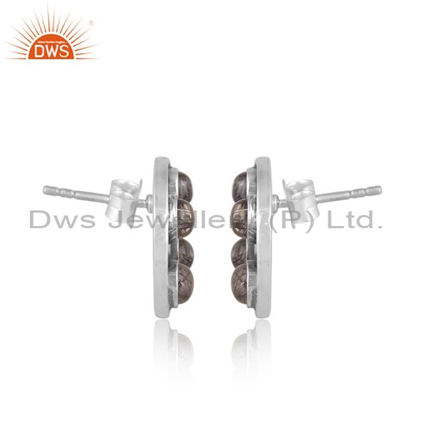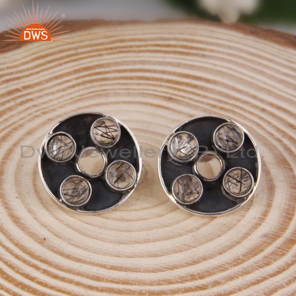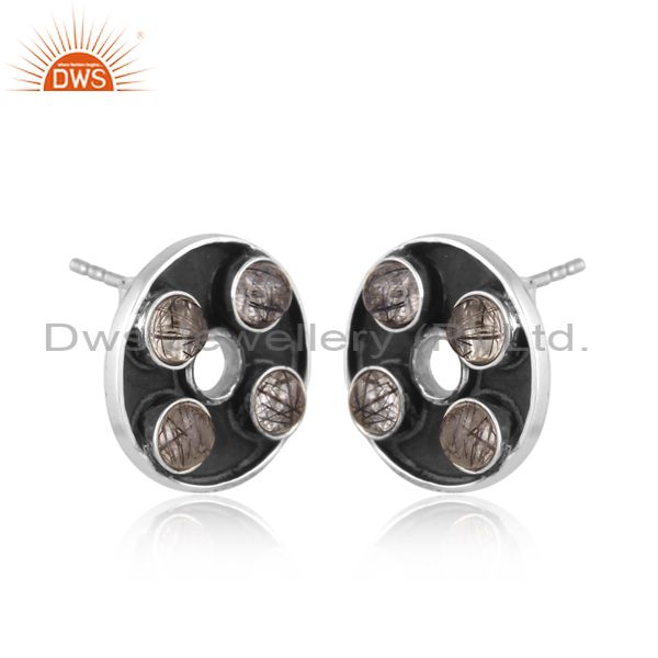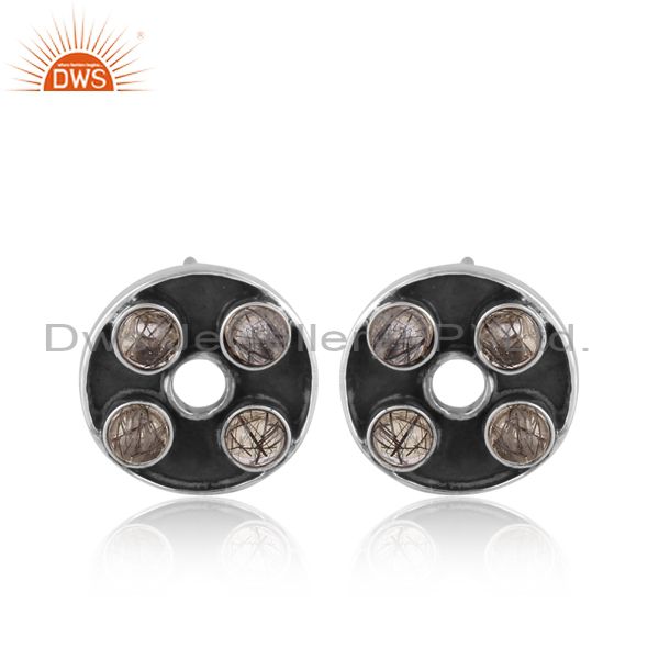 Black Rutile Set Oxidized 925 Silver Round Designer Earrings
