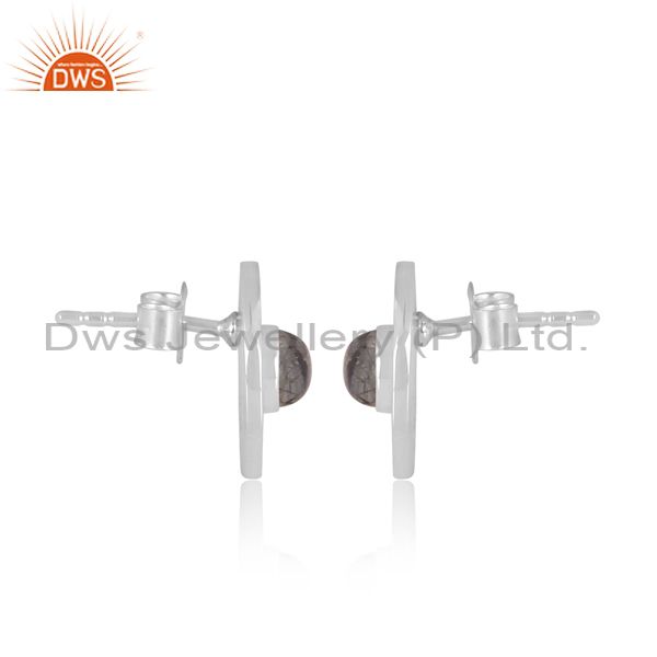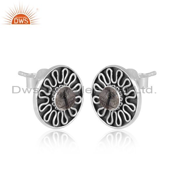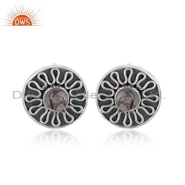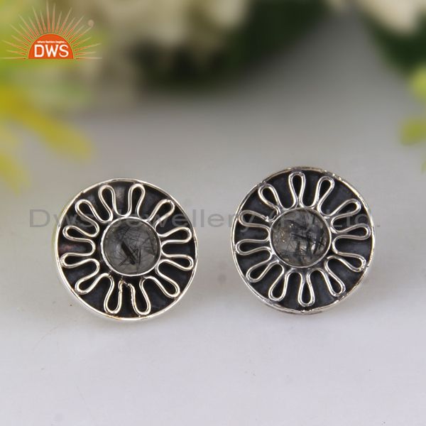 Black Rutile Set Oxidized 925 Silver Round Handmade Earrings