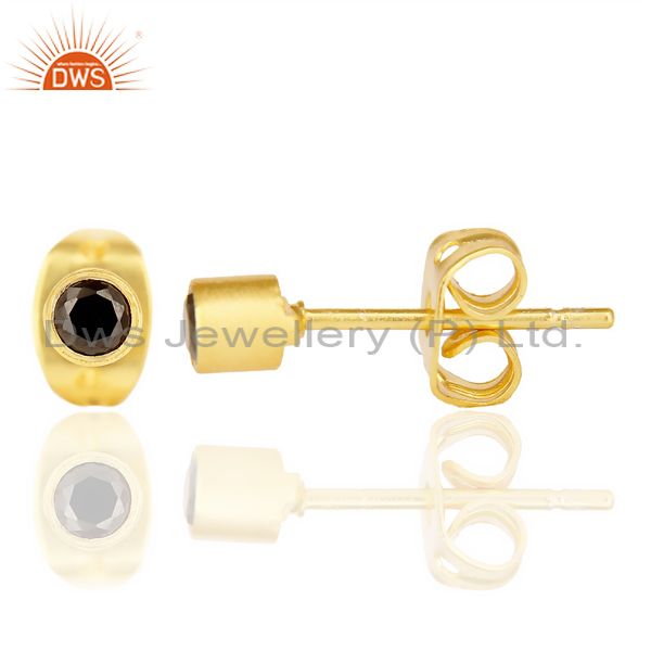 Black Zircon Tiny 3Mm Post 14 K Gold Plated Fashion Earring,Quete Earrings