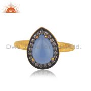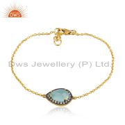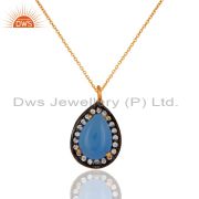 Blue Aqua Chalcedony Gemstone Earring Made In 24K Gold Plated Sterling Silver
