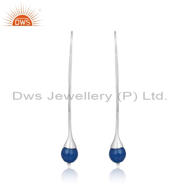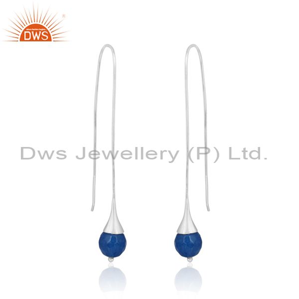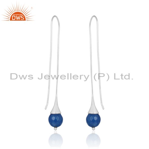 Blue Aventurine Ball Designer Long Drop Earring in Solid Silver