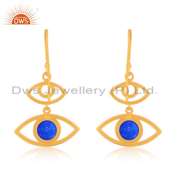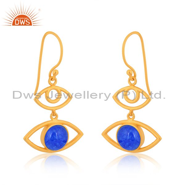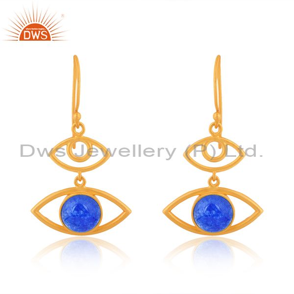Blue Aventurine Gemstone Gold Plated Silver Evil Eye Earring