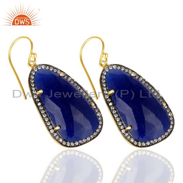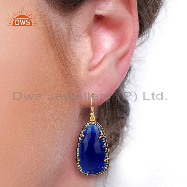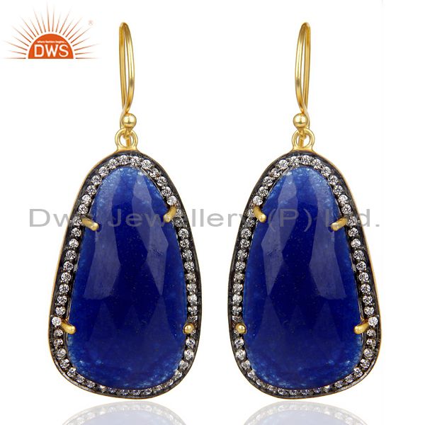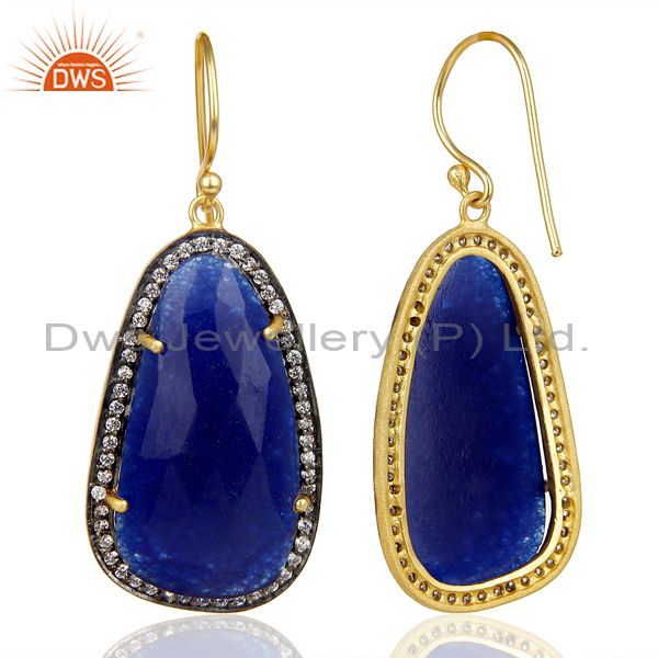 Blue Aventurine White Zircon 14K Gold Plated 925 Sterling Silver Drops Earrings
