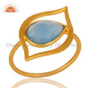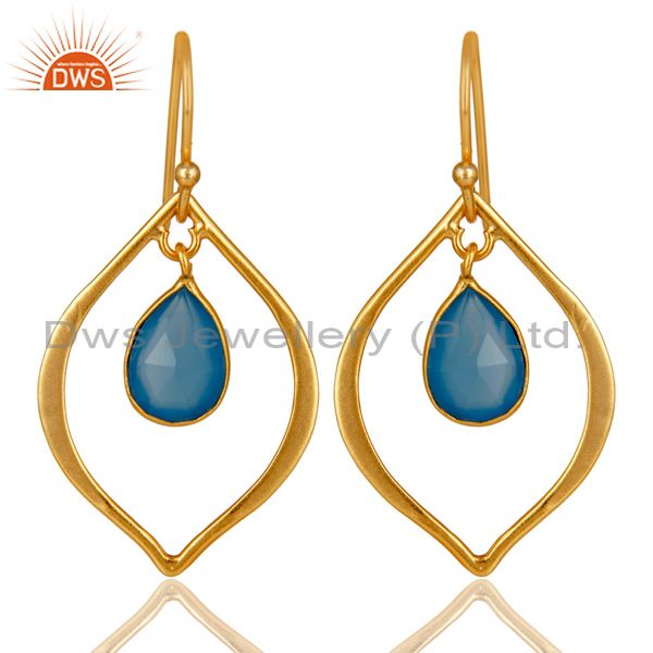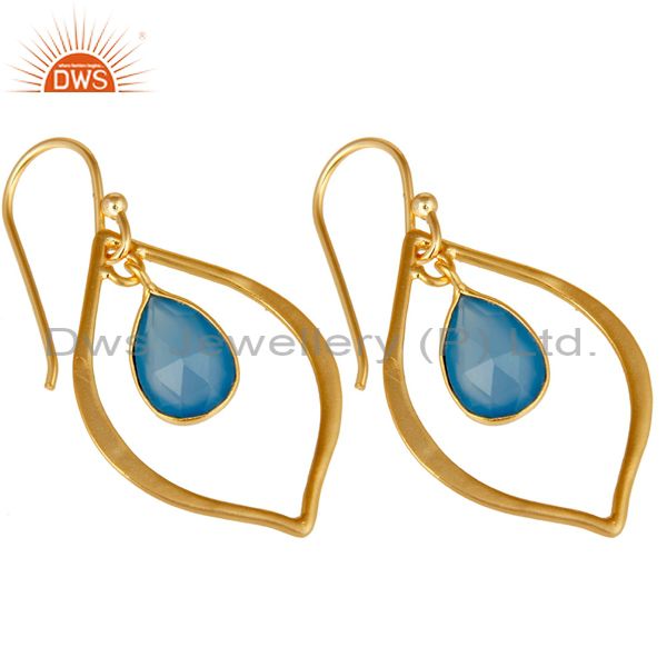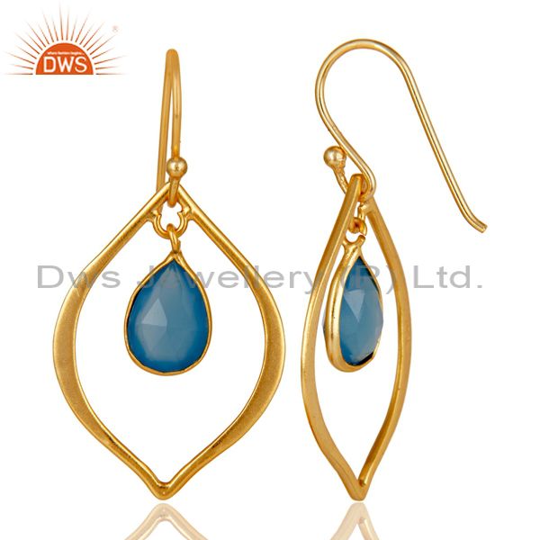 Blue Chalcedony 18K Gold Plated Art Deco Sterling Silver Earring