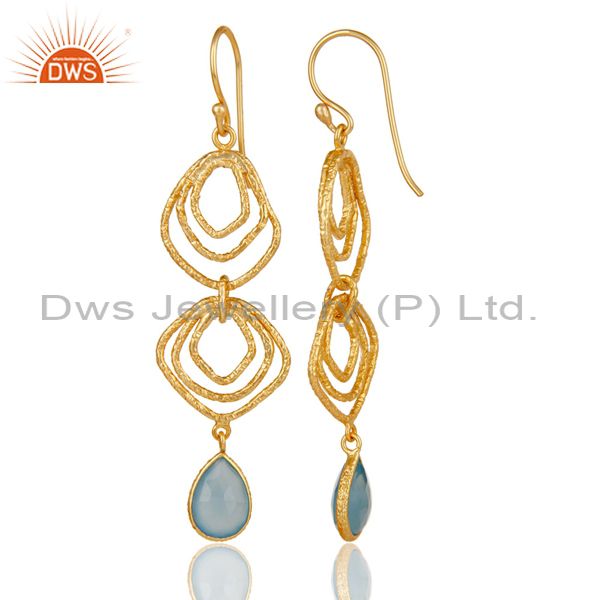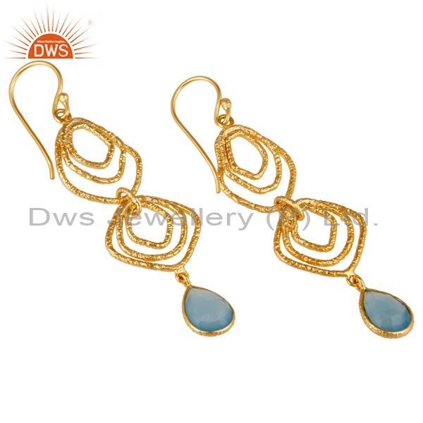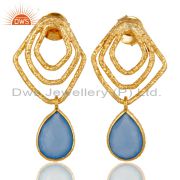 Blue Chalcedony Asymmetrical Dangle 14K Gold Plated 92.5 Sterling Silver Earring