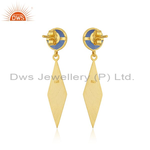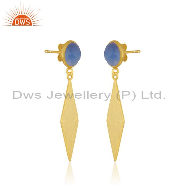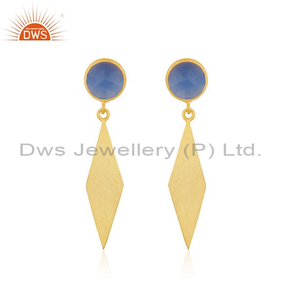 Blue Chalcedony Gemstone 925 Sterling Silver Gold Plated Earrings Manufacturer