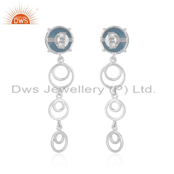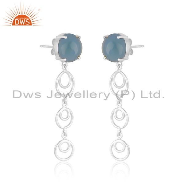 Blue Chalcedony Gemstone Fine Sterling Silver Designer Womens Earrings