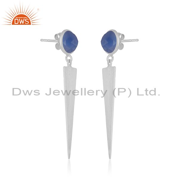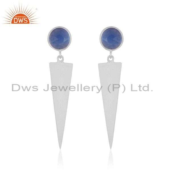 Blue Chalcedony Gemstone Fine Sterling Silver Earring Manufacturer India