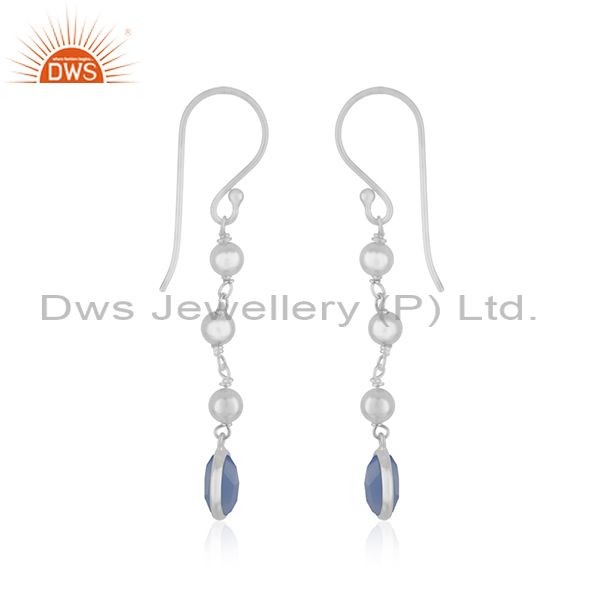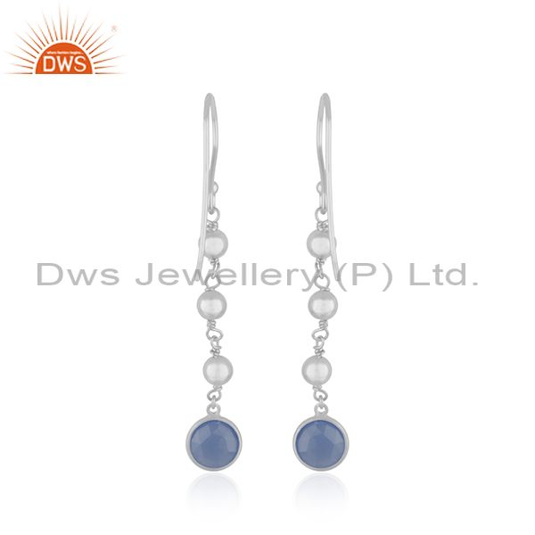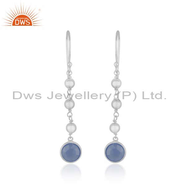 Blue Chalcedony Gemstone Fine Sterling Silver Earring Wholesaler India