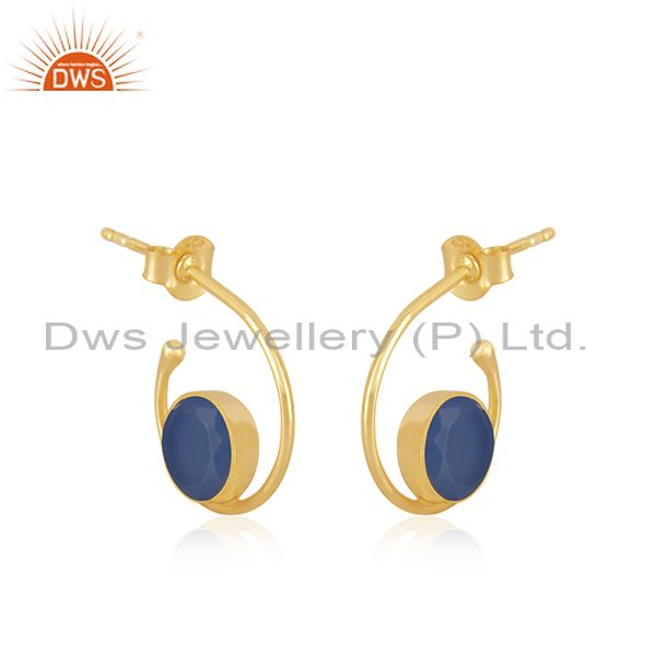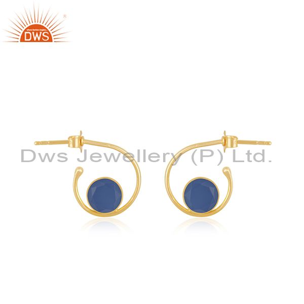 Blue Chalcedony Gemstone Gold Plated 925 Silver Hoop Earring Manufacturer