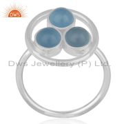 Blue Chalcedony Gemstone Handmade Circle Design 925 Silver Earrings Jewelry