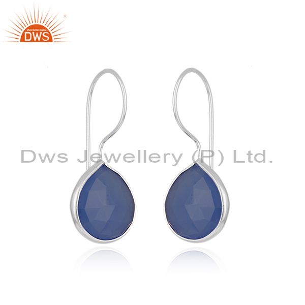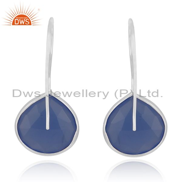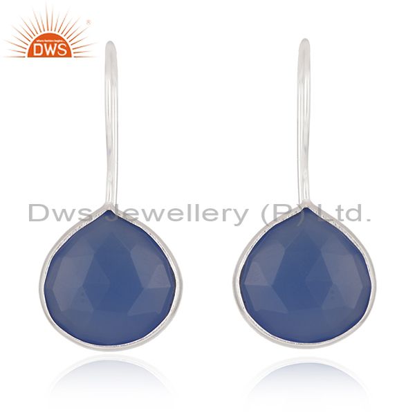 Blue Chalcedony Gemstone Sterling Fine Silver Drop Earring Wholesale