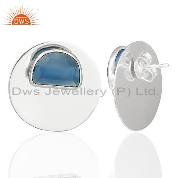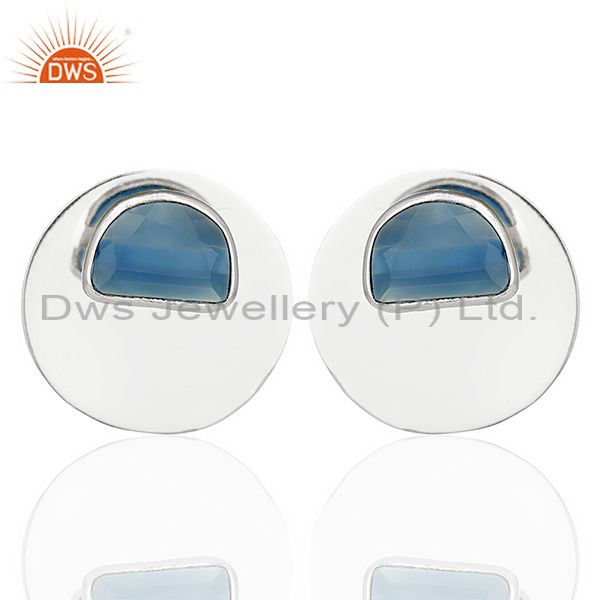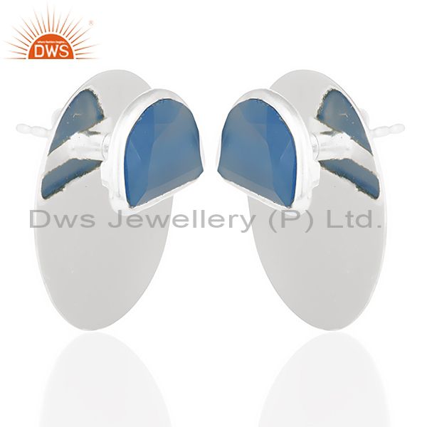 Blue Chalcedony Gemstone Stud Solid 925 Sterling Silver Earrings Jewelry