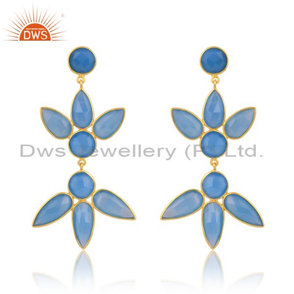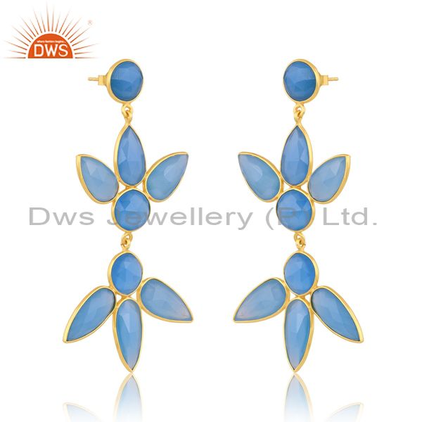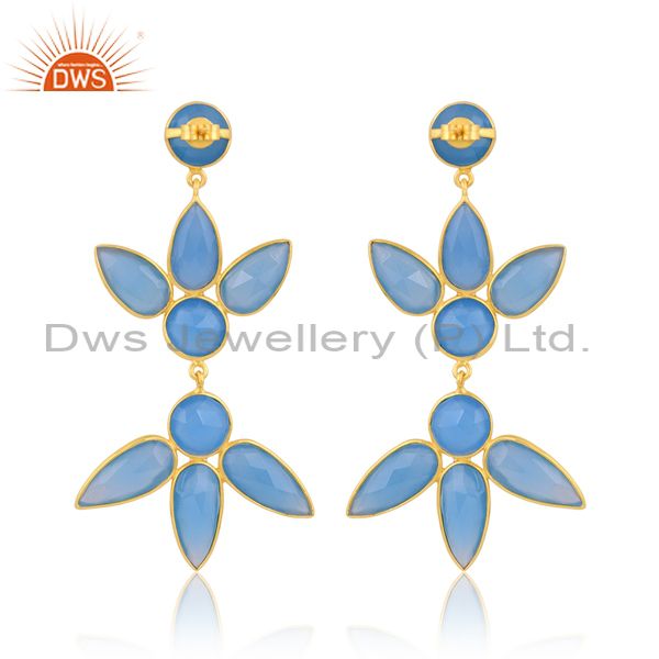 Blue Chalcedony On 18K Gold Plated Sterling Silver Earring
