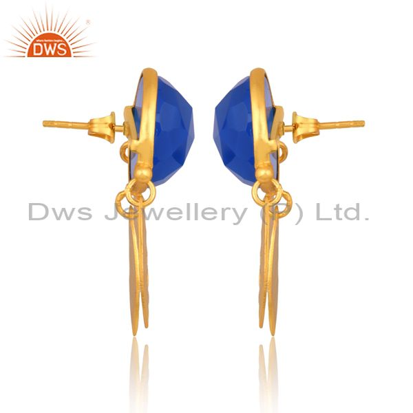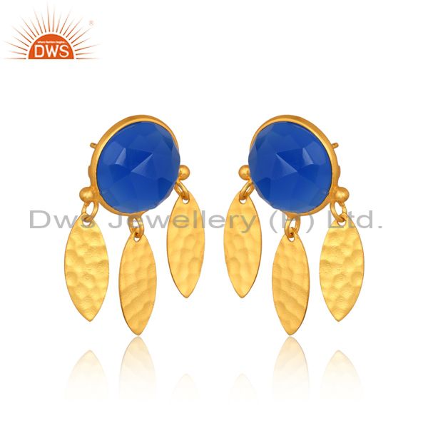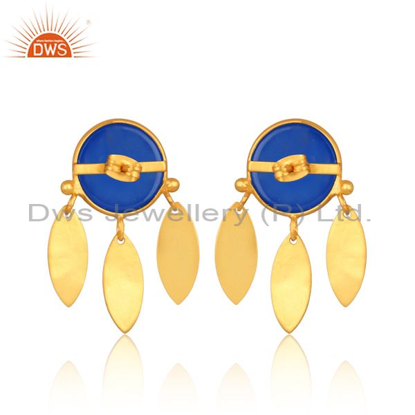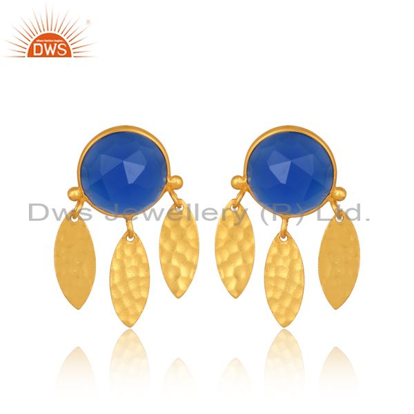 Blue Chalcedony Set Brass Gold Handmade Fancy Boho Earrings
