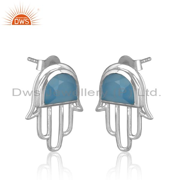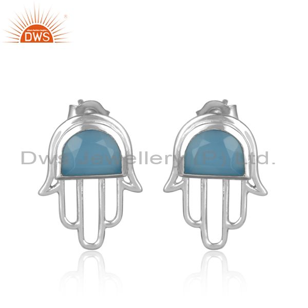 Blue Chalcedony Set Fine 925 Silver Hamsa Statement Tops