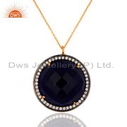 Blue Corundum & White Zircon 925 Sterling Silver Faceted Round Gemstone Earrings