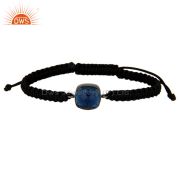 Blue Corundum Set Gold On Sterling Silver Square Earrings