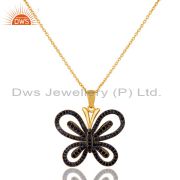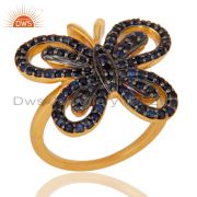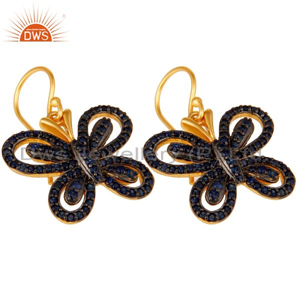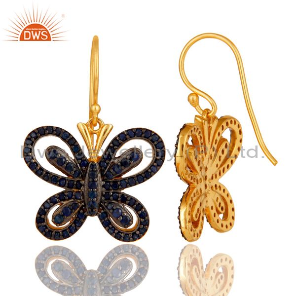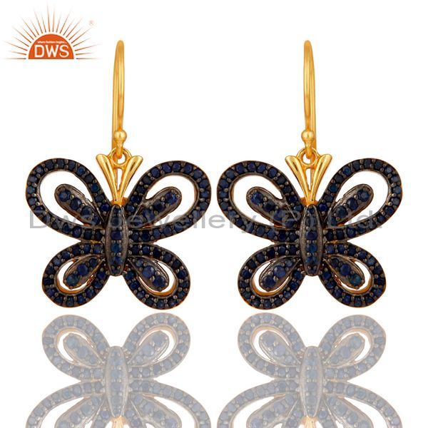 Blue Sapphire and 18K Gold Plated Sterling Silver Butterfly Drop Earring