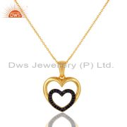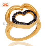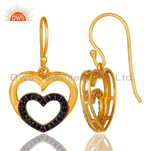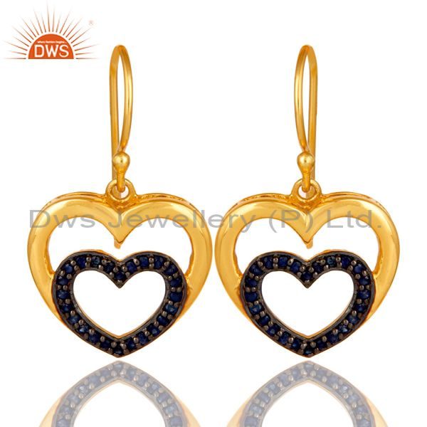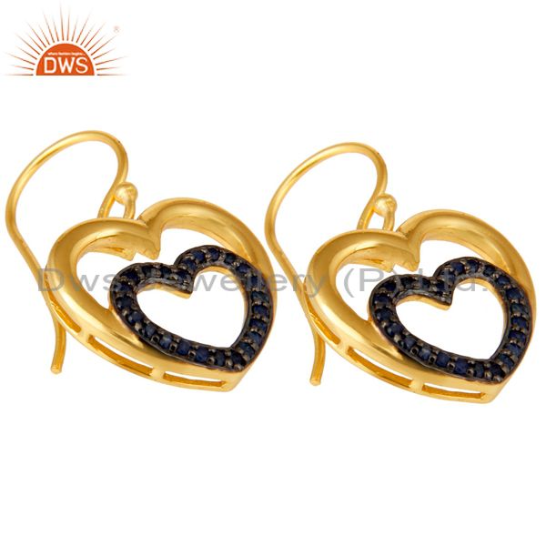 Blue Sapphire and 18K Gold Plated Sterling Silver Heart Design Ear Stud