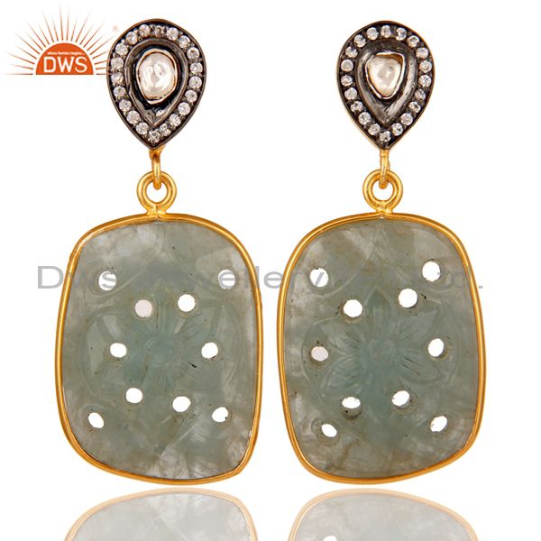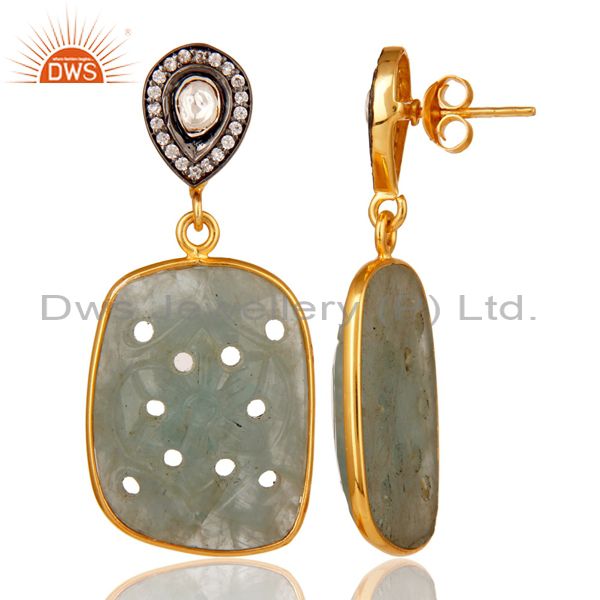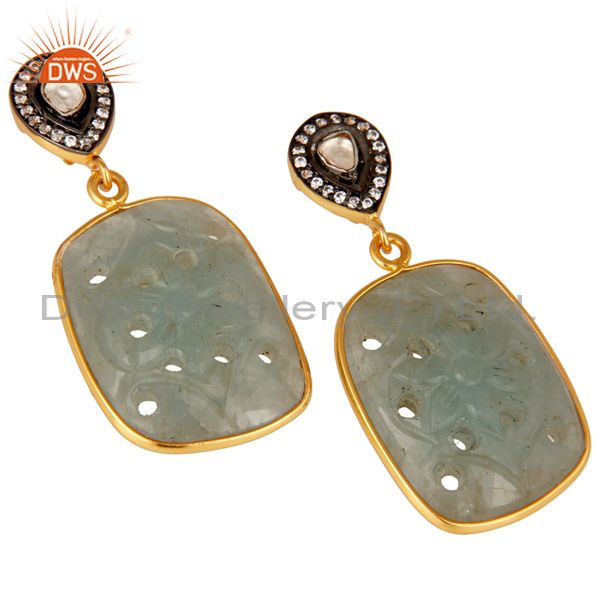 Blue Sapphire Carving and Crystal 18K Gold Plated Sterling Silver Drop Earring